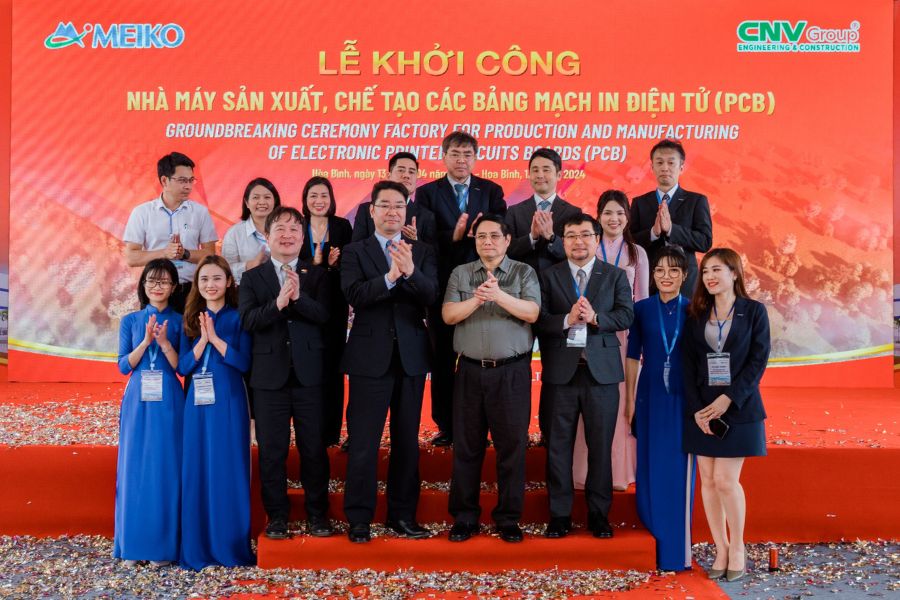 Ngày 13/04/2024, Tập đoàn MEIKO đã khởi công xây dựng nhà máy sản xuất bảng mạch in điện tử (PCB) - ngành sản xuất chính của chúng tôi, tại khu công nghiệp Bờ trái sông Đà, TP Hòa Bình. Lễ khởi công có sự tham dự của Thủ tướng Phạm Minh Chính cùng nhiều đại diện các cơ quan liên quan của tỉnh Hòa Bình.